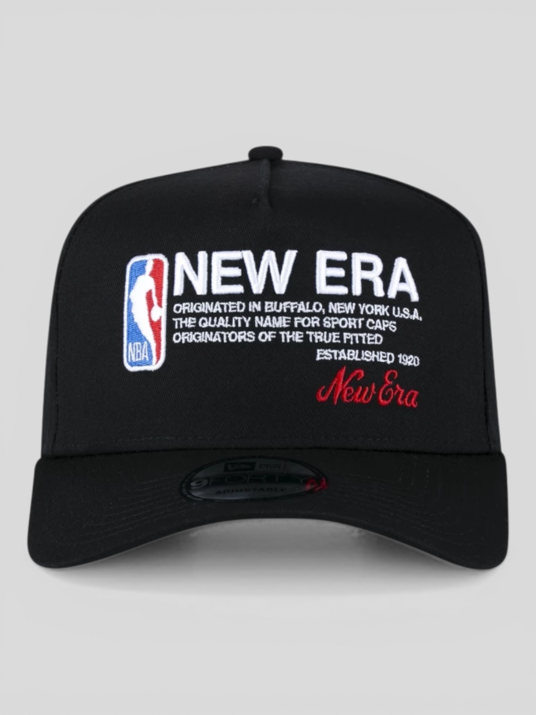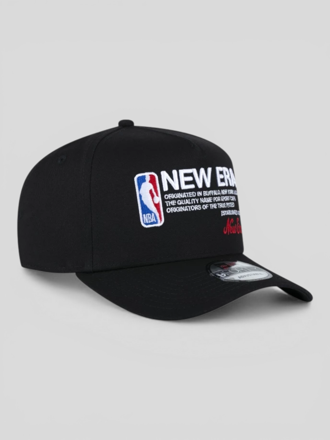 No destaque visual, o bordado frontal com referência à NBA representa autenticidade esportiva e estilo global, enquanto a flag New Era® bordada na lateral assegura qualidade e tradição inquestionáveis.