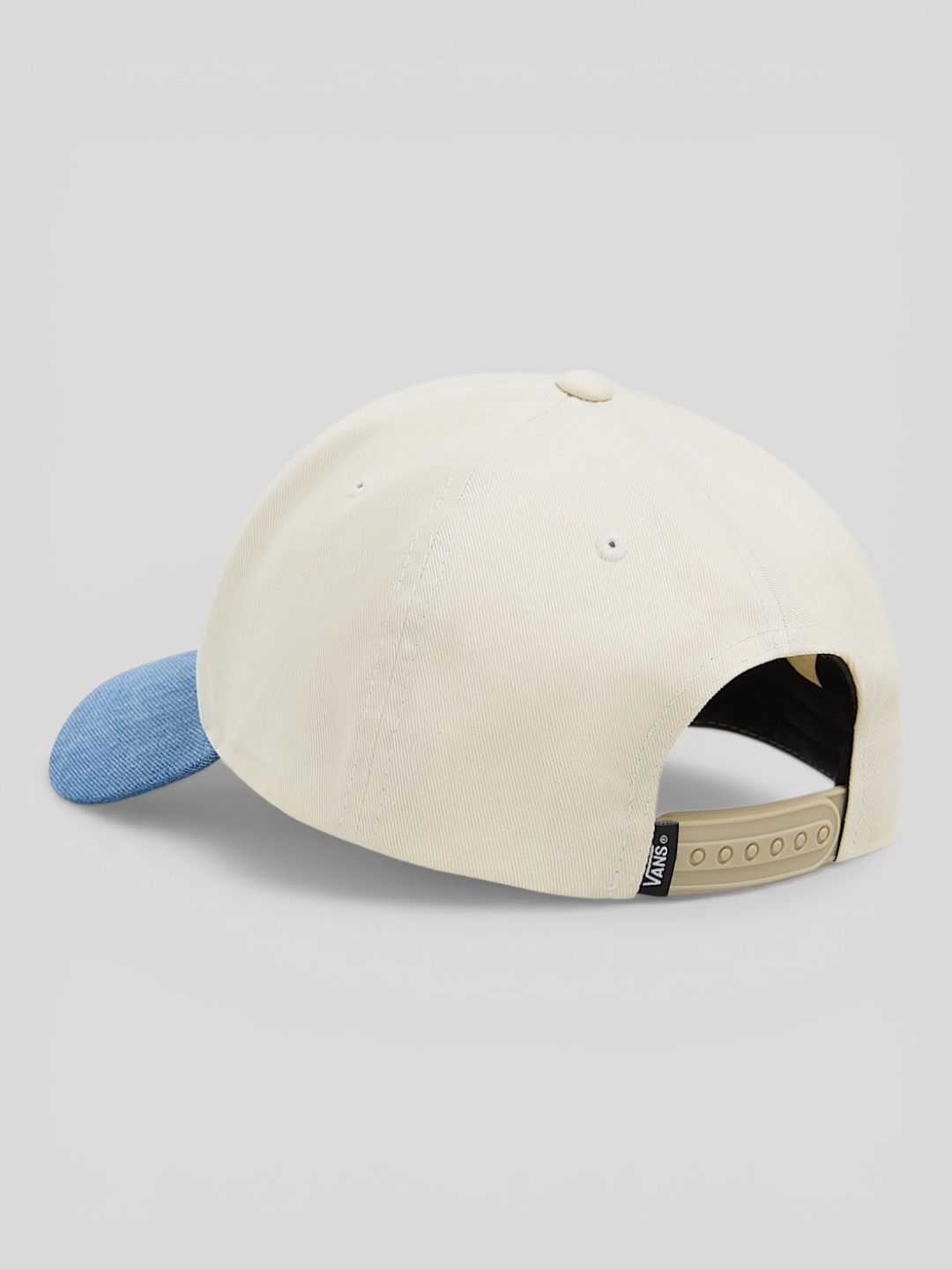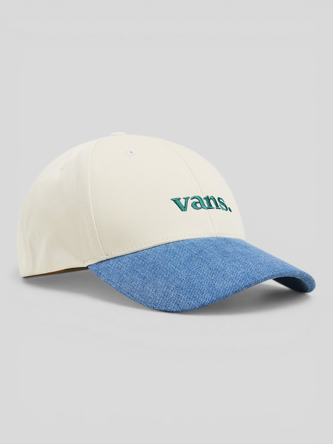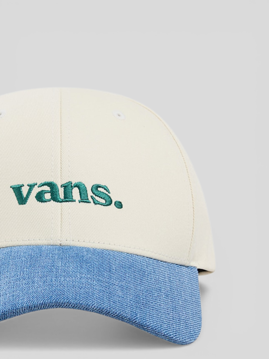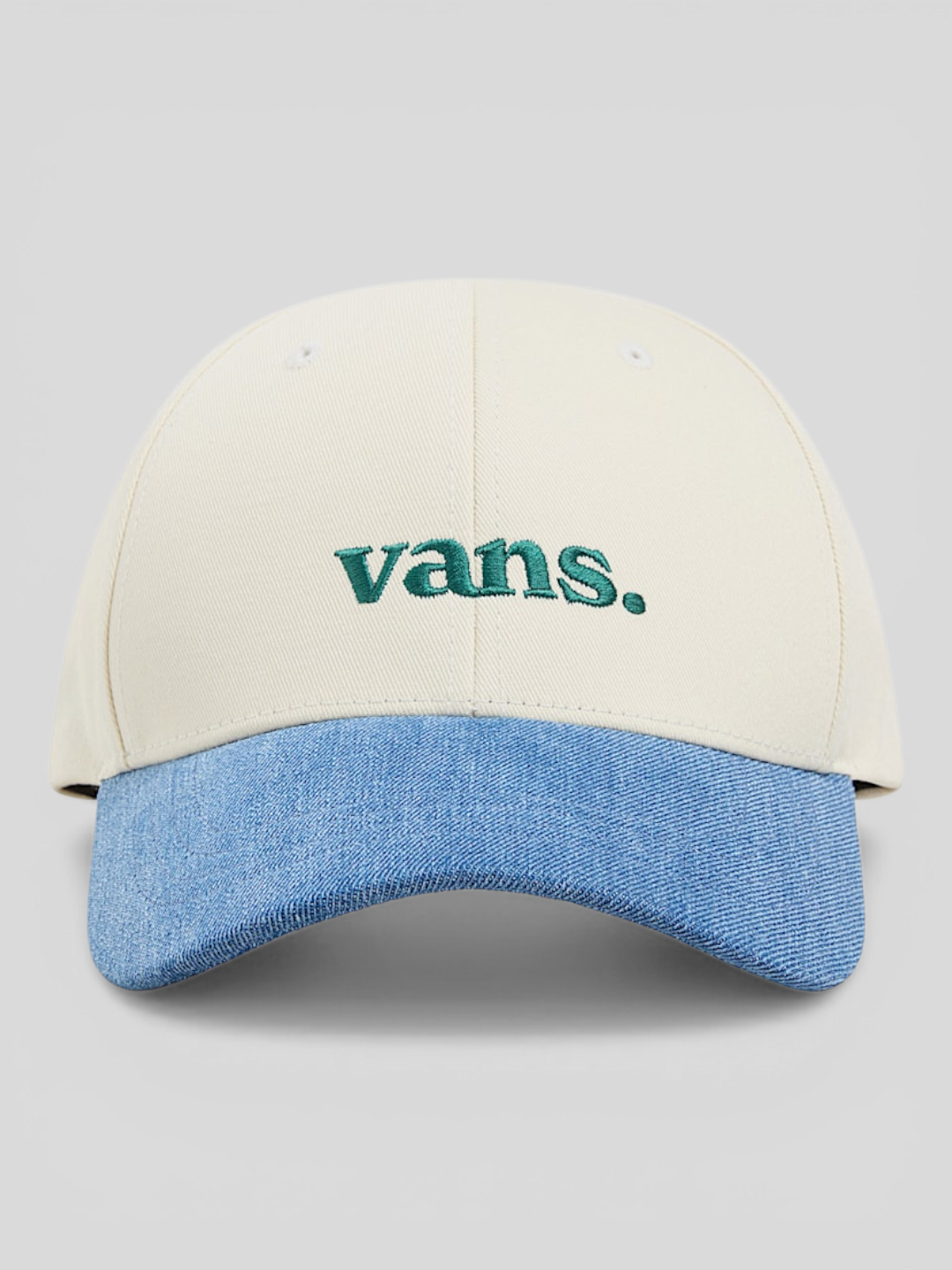O modelo apresenta construção em algodão resistente, aba curva com aparência levemente desgastada e logo Vans bordado diretamente na parte frontal, mantendo o visual clássico presente nos acessórios da marca.