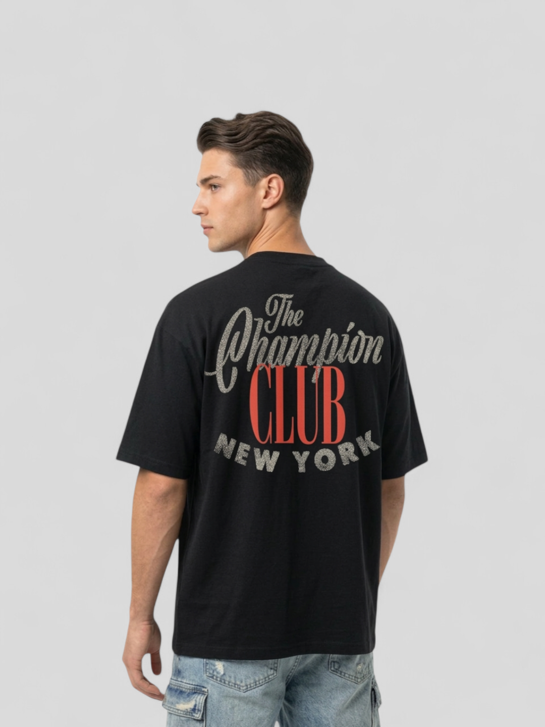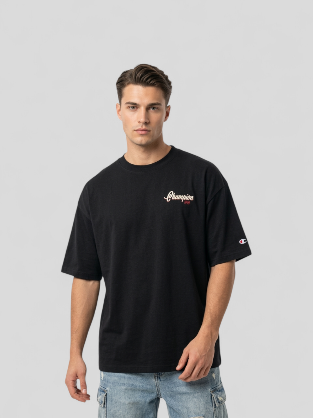 Presença pesada, caimento solto e identidade clássica. A Camiseta Champion Club NY Oversize é aquela peça que domina o visual sem esforço — tecido encorpado, modelagem ampla e o peso de uma marca histórica no streetwear mundial.