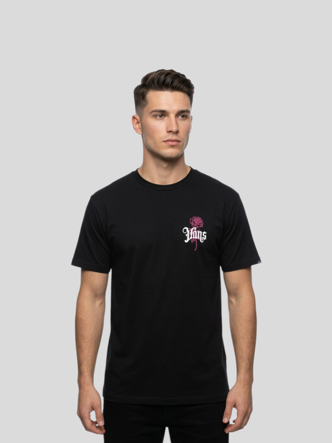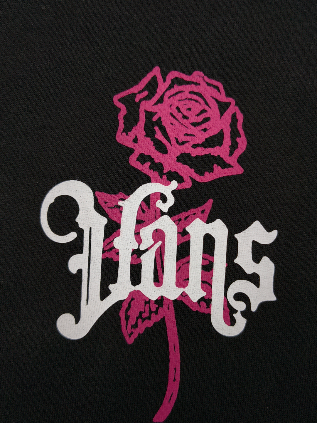• Estampa frontal discreta com assinatura Vans + arte da rosa