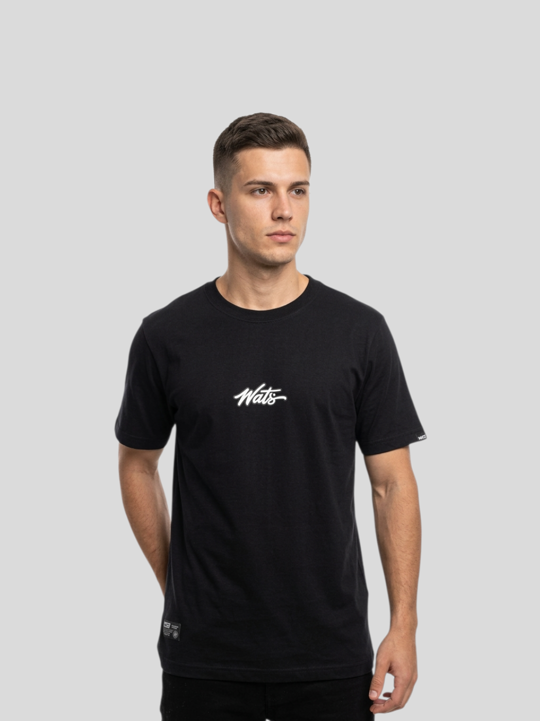 Camisetas da marca normalmente utilizam algodão 100% para conforto e respirabilidade, característica comum nas peças da Wats voltadas ao streetwear.