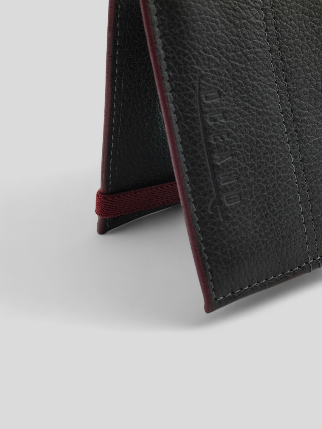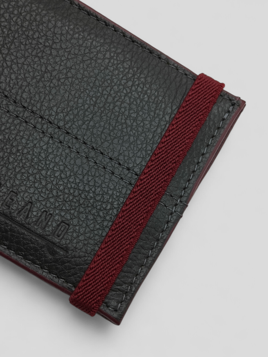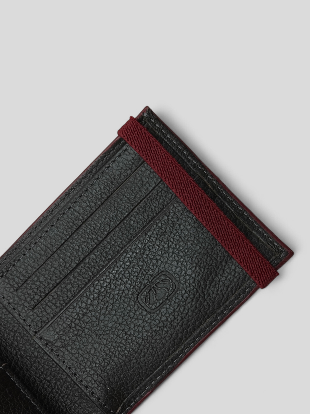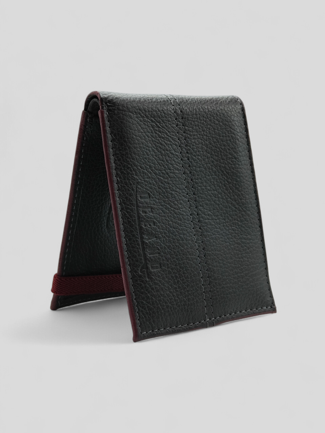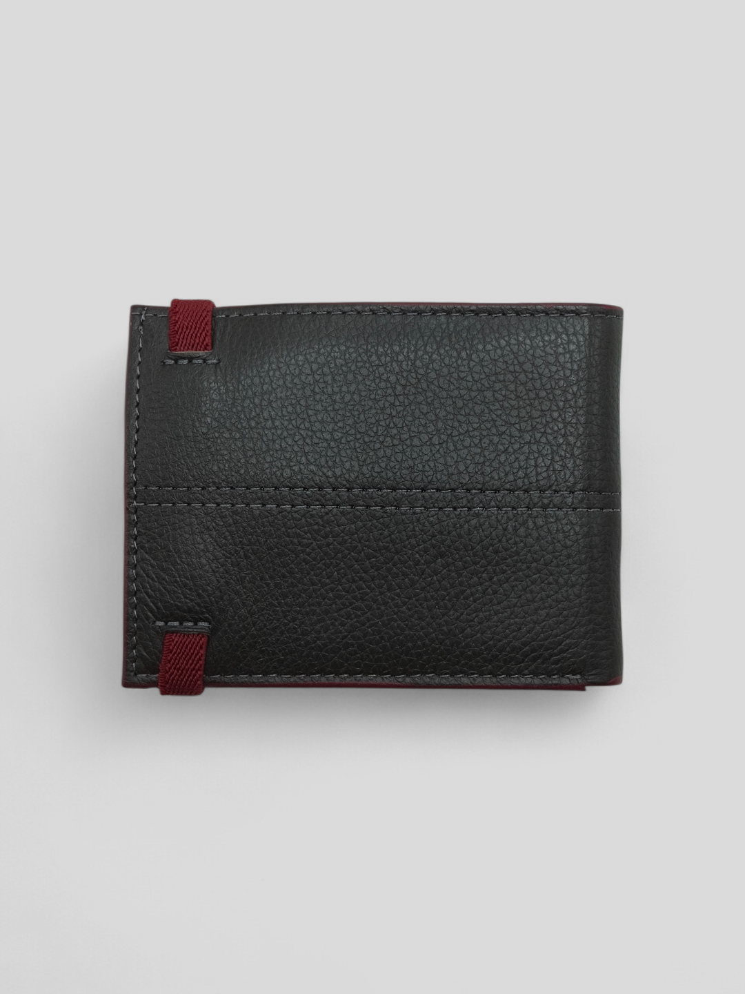 CARTEIRA OCEANO EM COURO LEGÍTIMO PRETA COM DETALHE VINHO E ELÁSTICO