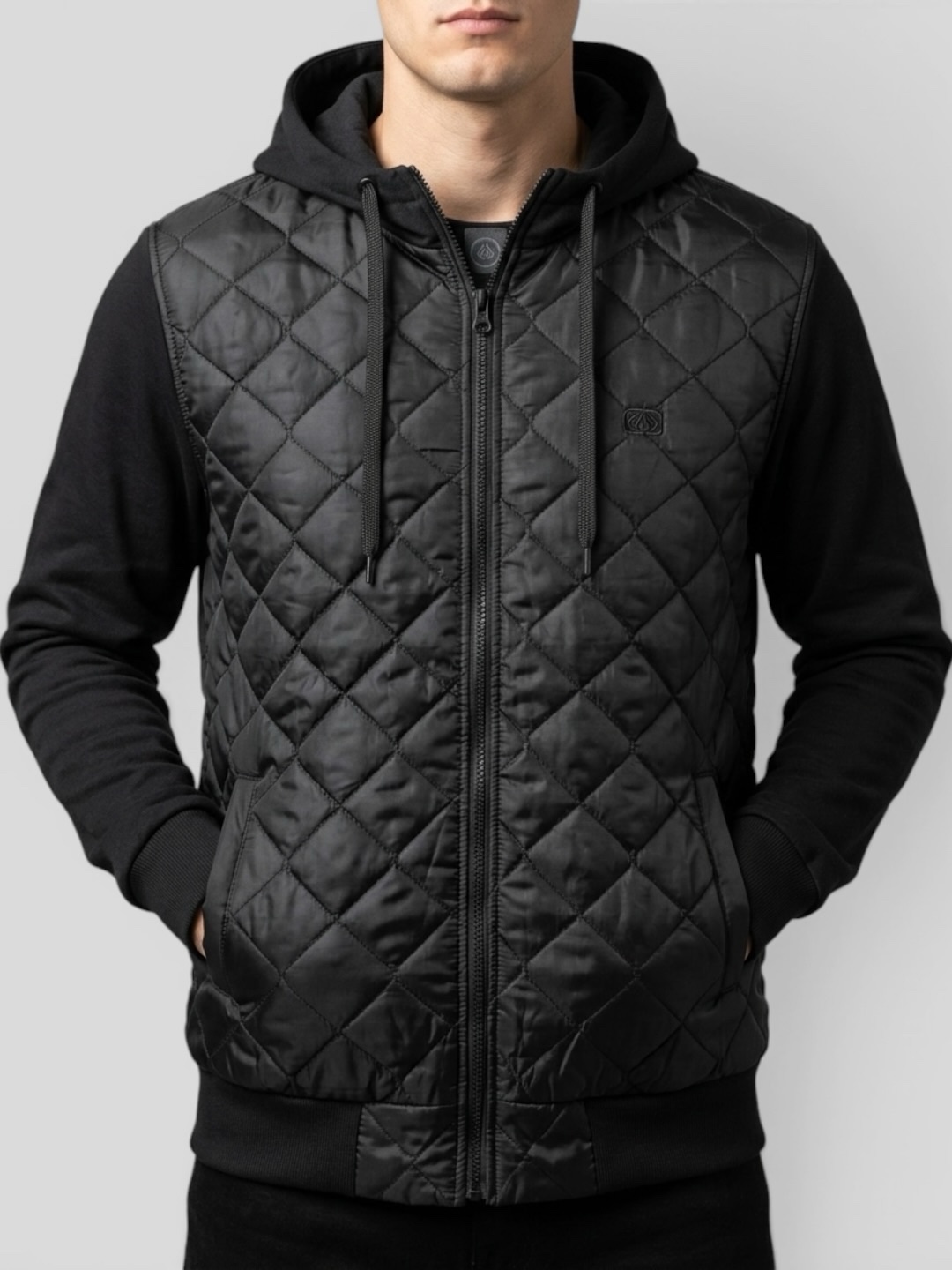 Seu destaque está na construção em matelassê, que proporciona isolamento térmico eficiente sem deixar a peça pesada. O tecido em poliéster garante leveza, resistência e um toque macio, além de um ótimo caimento no corpo.