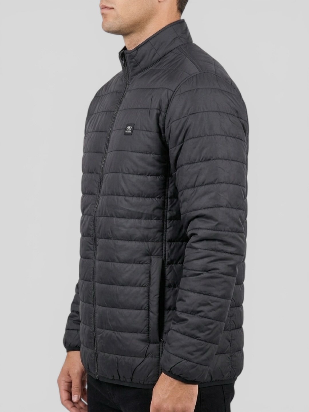 Seu destaque está na construção em nylon (poliamida), que proporciona leveza, resistência e proteção contra o vento. O acabamento puffer garante isolamento térmico eficiente, mantendo o corpo aquecido em dias mais frios, sem pesar no uso.