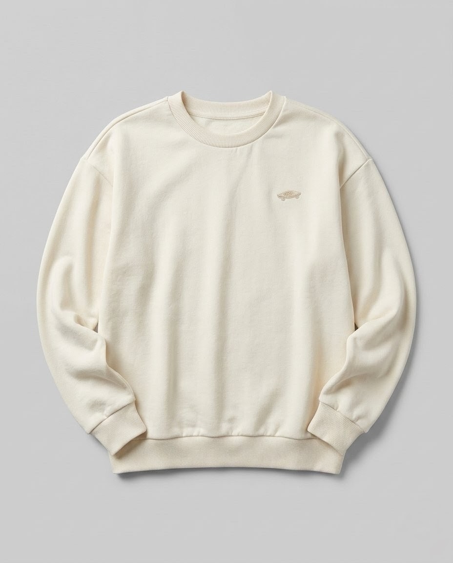 Seu destaque está na construção em tecido macio e resistente, com mistura de algodão e poliéster, garantindo conforto térmico e durabilidade no uso diário. A modelagem clássica com gola careca proporciona um caimento confortável e atemporal, enquanto a cor egret (off-white/bege claro) traz sofisticação e facilidade na hora de montar looks.