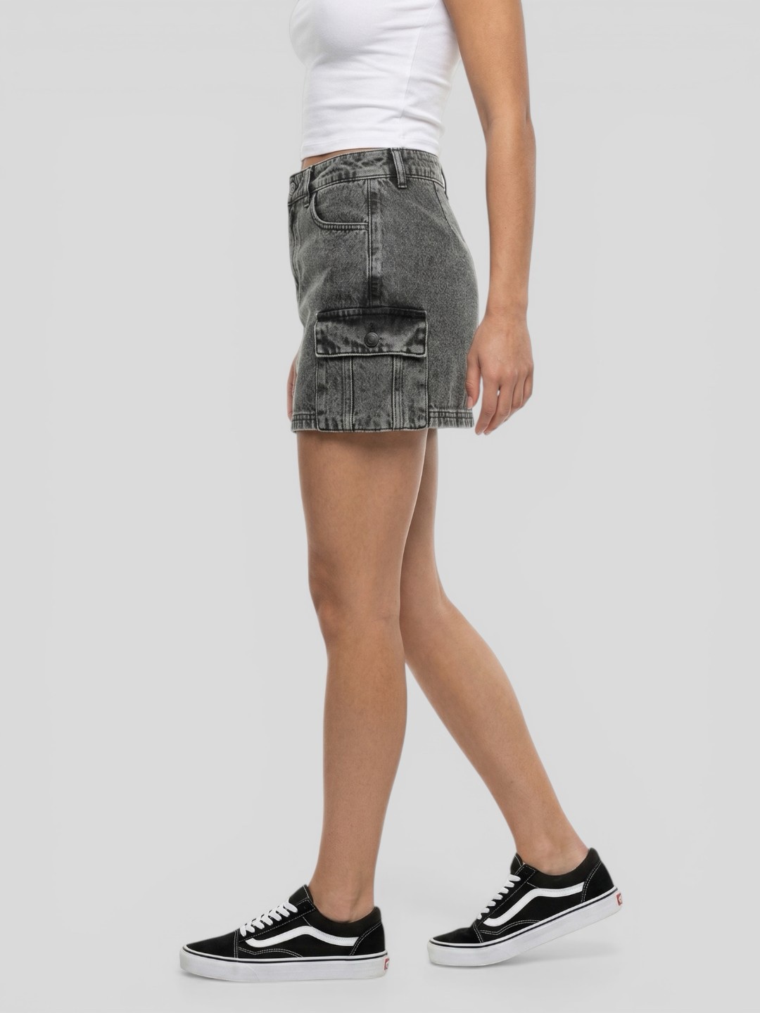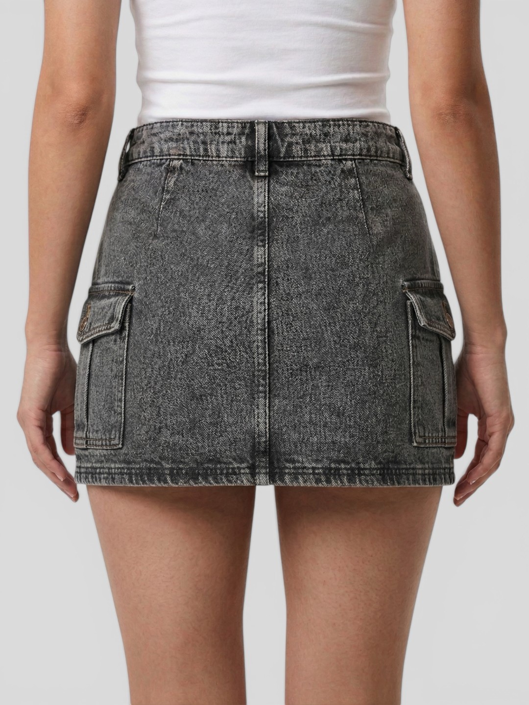 Seu destaque está na construção em jeans com lavagem estonada escura, que traz um efeito vintage super atual. Os bolsos cargo frontais adicionam um toque funcional e estiloso, reforçando a estética street da peça. O modelo conta com fechamento frontal por botão e zíper, além de passantes para cinto, garantindo praticidade e ajuste perfeito. A modelagem estruturada valoriza o corpo sem abrir mão do conforto.