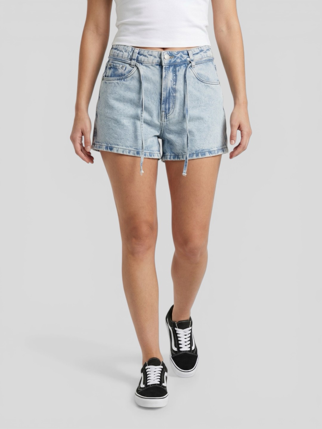 Seu destaque está na modelagem mais soltinha, que proporciona liberdade de movimento e um caimento despojado. Confeccionado em jeans com lavagem clara e atual, traz um visual fresh e fácil de combinar. O diferencial fica por conta do ajuste com amarração frontal, que adiciona um toque estiloso e funcional à peça.