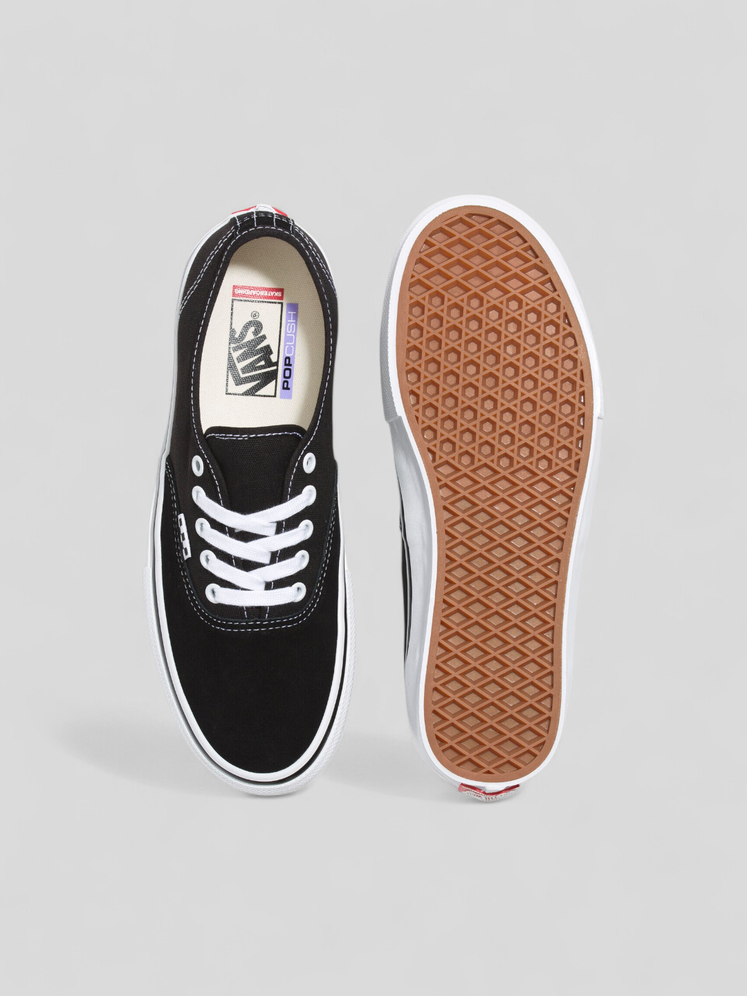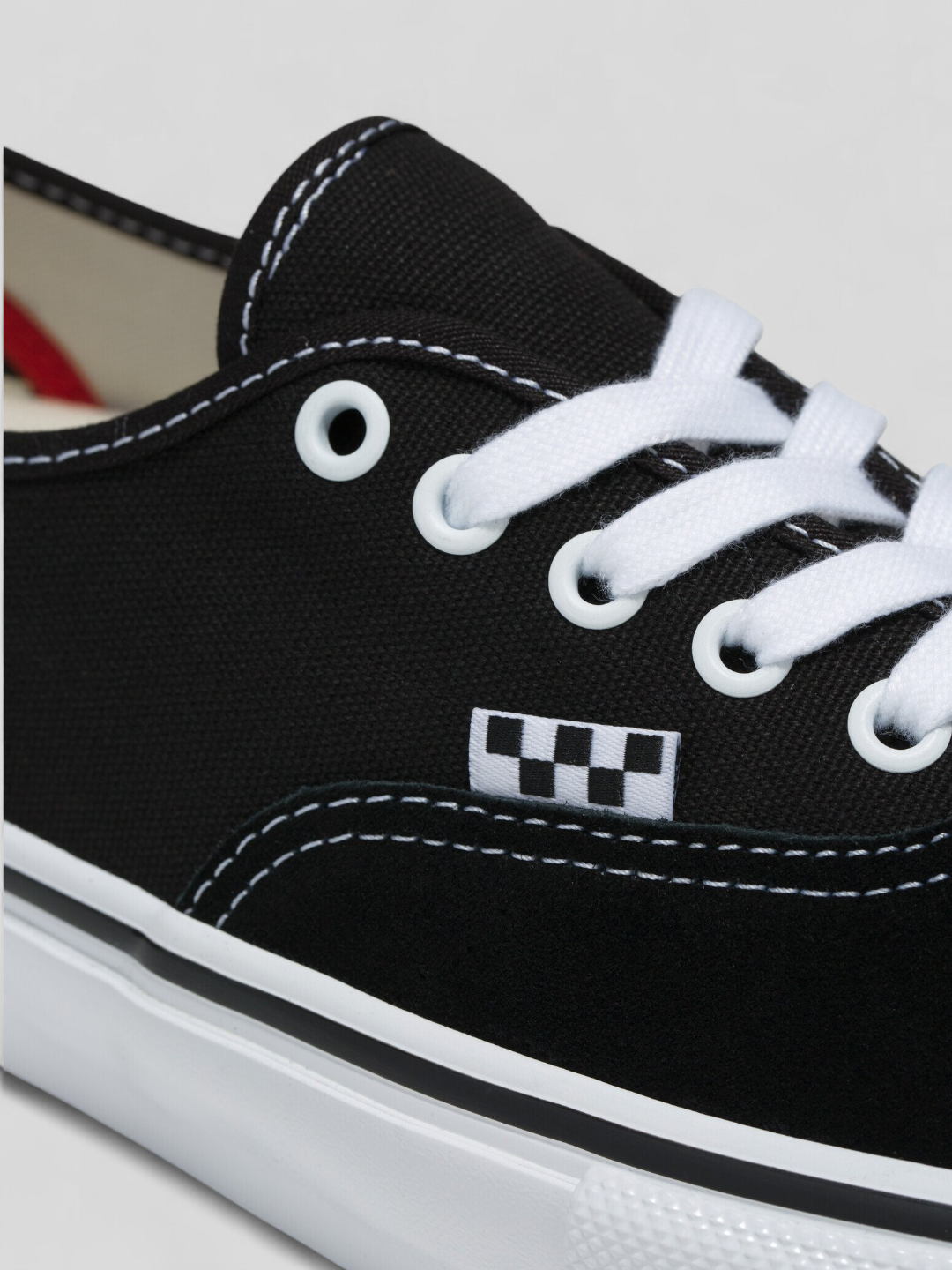 Com cabedal em lona reforçada e construção vulcanizada, proporciona excelente contato com o shape e maior durabilidade. A linha Skate Classics foi totalmente redesenhada para atender às exigências do skate moderno, incorporando tecnologias que elevam o nível de performance sem perder a identidade original do Authentic. [oai_citation:0‡Vans](https://www.vans.com.br/tenis-skate-authentic-black-white/p/1002900190002U?utm_source=chatgpt.com)