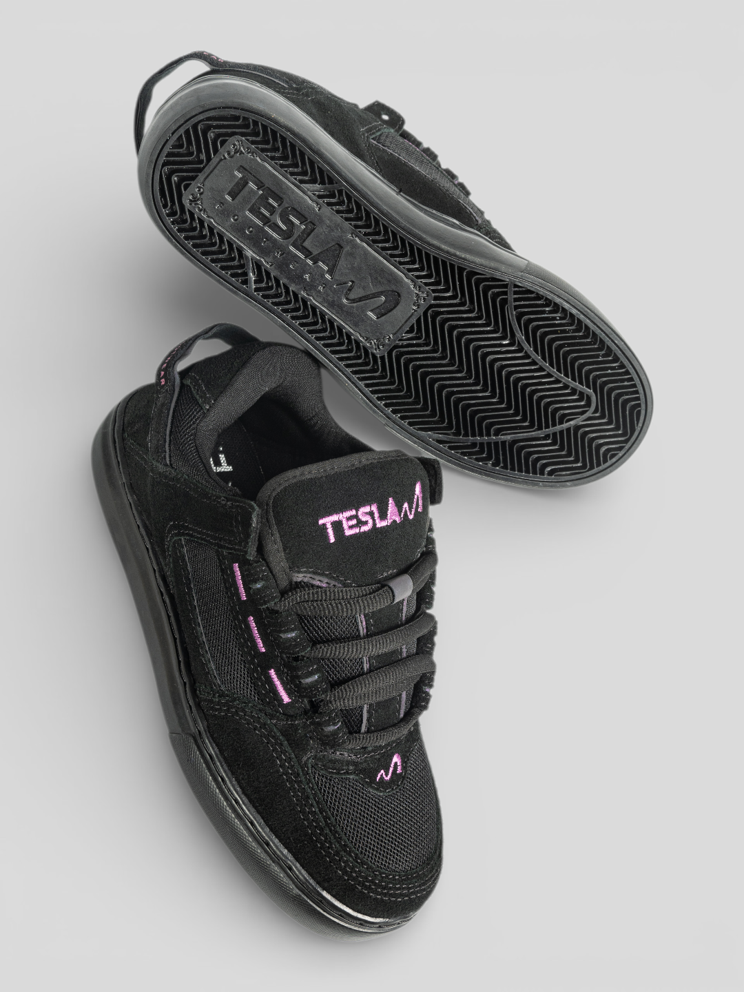 O modelo Tesla Coil é um tênis de perfil skatista com estrutura reforçada e visual robusto, pensado para suportar o desgaste do uso urbano e sessões de skate, mantendo conforto e estabilidade ao caminhar.